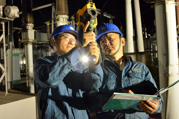 电力员工夜巡变电站