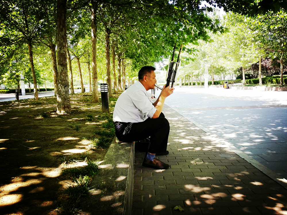 在东营市的一处公园里,一位乐器爱好者正全神贯注的练习吹笙。随着的生活水平的提高,人们开始越来越注重文化享受。