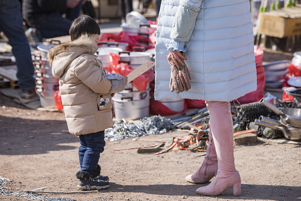 费县大集上时尚的母子。