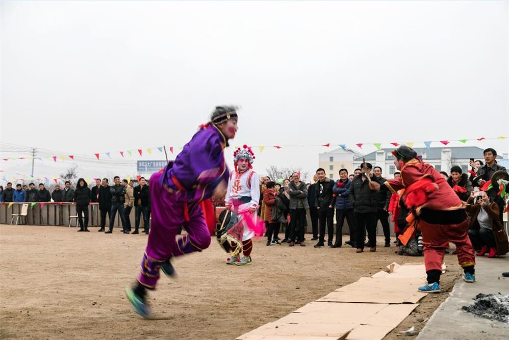 2018年2月28日拍摄于海阳市大辛家,丑婆与傻小子。丑婆是乡间老妇扮相,傻小子则是顽皮孩童扮相。二人在秧歌队中不受局限,可随意跑动,逗闹嬉笑,取悦观众。