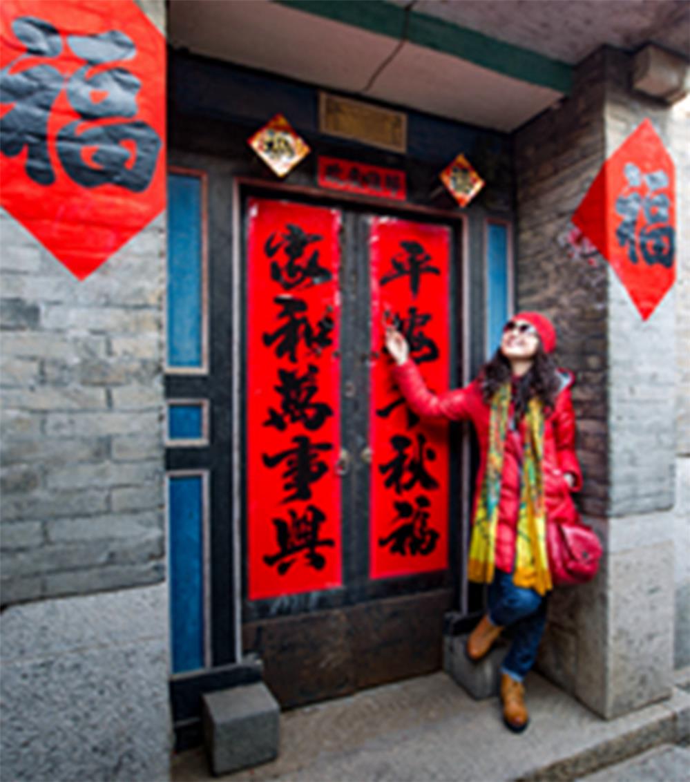 大大的福字,幸福的笑脸。