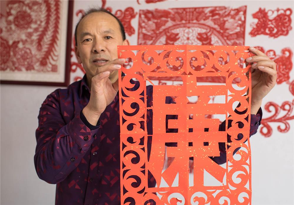 春节前夕,临沂市兰山区银雀山街道剪纸非物质文化遗产传承人林华强创作以“廉”字为主题的剪纸作品,表达一位手工艺人的新年愿望。