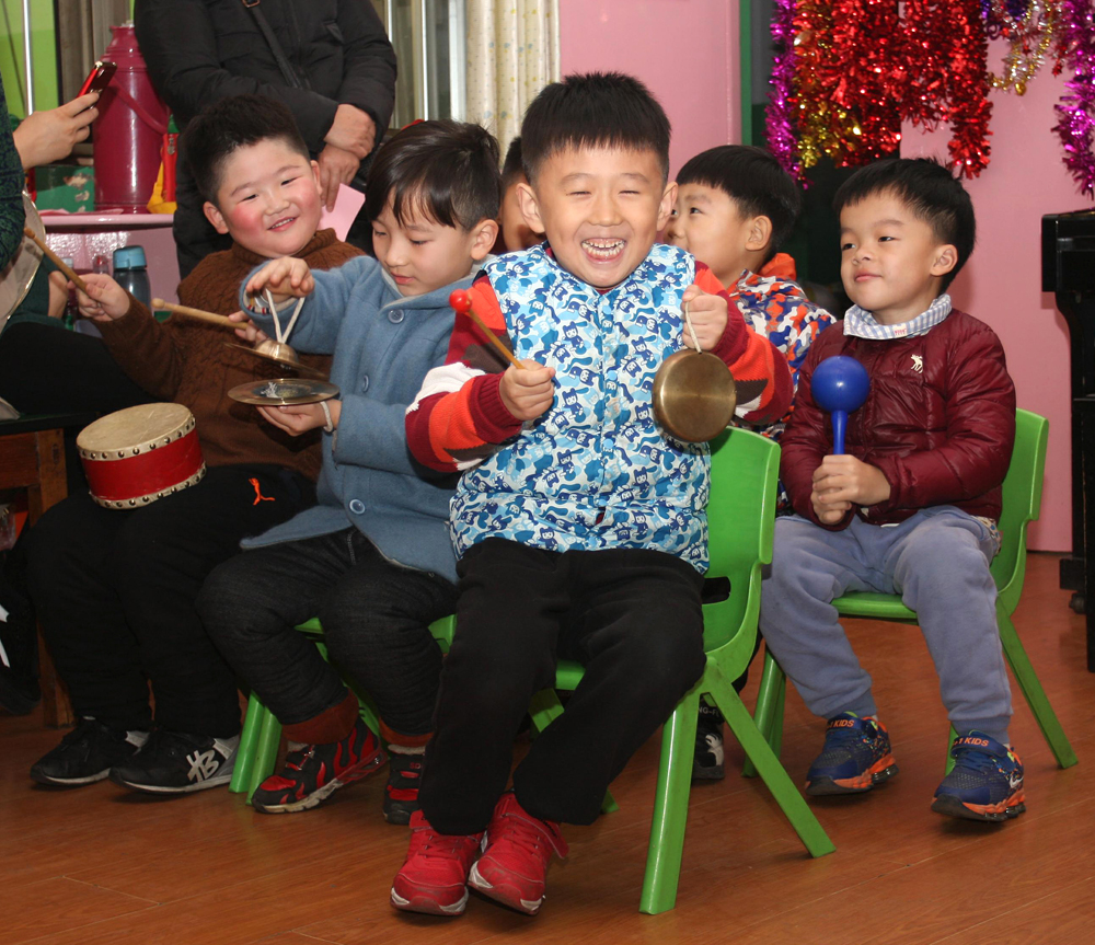 小朋友参加迎新年联欢会激动不已。