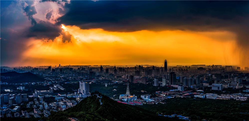 一束阳光穿过乌云,撒在泉城
