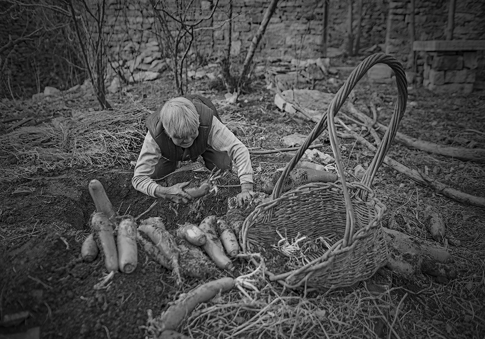 枣庄山村里,农民传统冬藏萝卜的方式:窖萝卜。