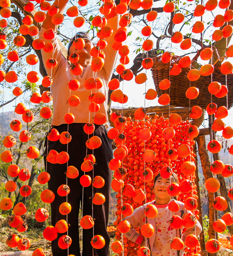 描绘了青州王坟附近的柿乡农民面对柿子丰收的喜悦情形。