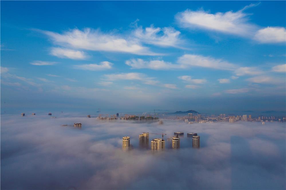 作品拍摄于日照海边平流雾